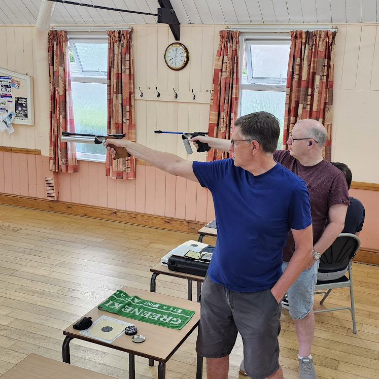 For members wishing to have a go, the club has two loan pistols which are available for club members to use without having to go buy equipment. To reserve the use of one of these pistols, please contact the indoor secretary via the club forum. Members are expected to provide their own .177 pellets.